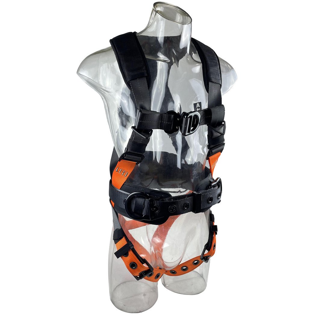 A comfortable safety harness belt that meets ANSI standards, with one drop point on the chest and back. There are six adjustable parts, providing shoulder and waist protection to enhance the wearing experience.