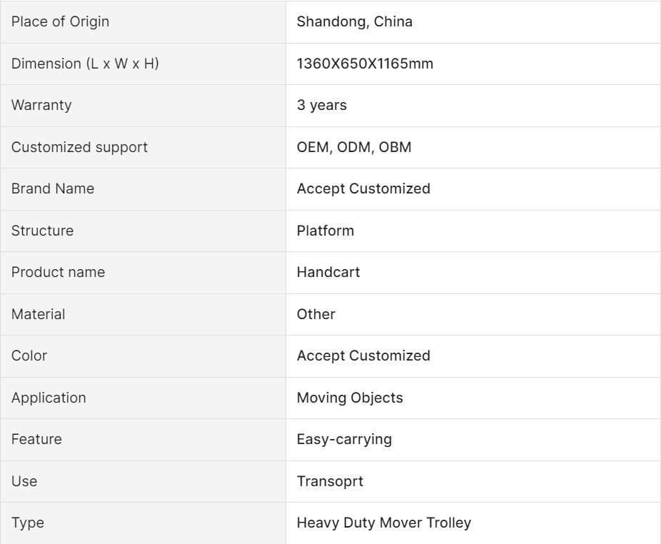 Versatility is another key feature of our platform cart. With customizable configurations and optional accessories such as cargo enclosures and ergonomic handles, it adapts to meet your specific requirements and enhances the overall user experience.
